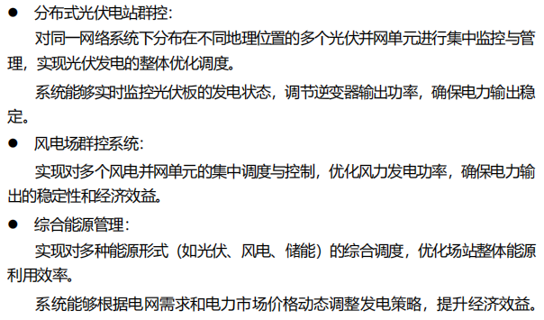 分布式新能源場站的群調群控系統主要是指一種用于集中管理、監控和控制多個新能源發電單元(如風電場、光伏電站等)的智能化系統。該系統能夠對同一組網系統中分布在不同地理位置的多個場站進行集中的調度與控制,提升整體發電效率、穩定性和安全性。